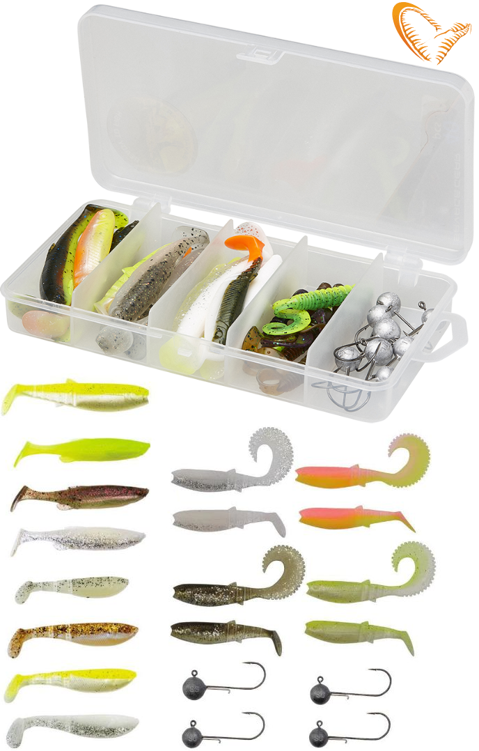 Box für Kunstköder, 4 x Cannibal Shad (6.8cm), 4 x Cannibal Curltail (8.4cm), 4 x 4Play Shad (7.2cm), 4 x Fat T-tail (7.5cm), 1 x Ball Jigghead (#1-4g), 2 x Ball Jigghead (#1-5g), 1 x Ball Jigghead (#1-7g)Haben Sie dieses Produkt schon einmal gekauft?