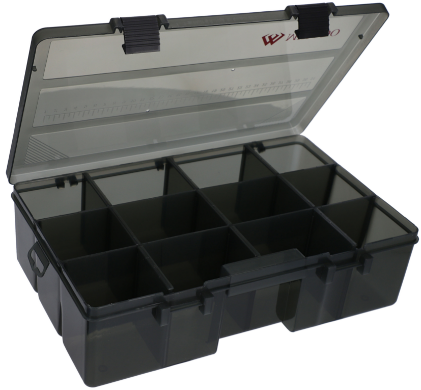 Fischereibox mit verstellbaren Trennwänden.