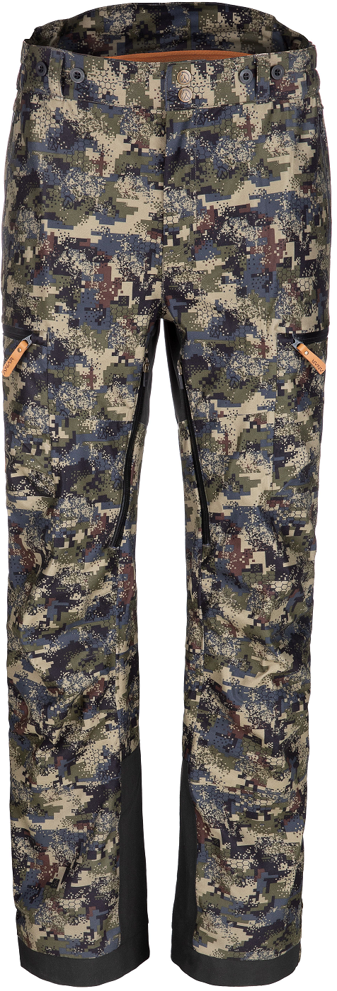Anar Hirvas is designed for Nordic hunting. The trousers feature a stylish and highly camouflaging camo pattern and a high-quality wind- and water-resistant membrane, which also has excellent breathability. The outer material is quiet and durable brushed polyester. The membrane is laminated directly to the outer fabric, ensuring the suit remains lightweight without accumulating moisture against the membrane. The interior mesh lining guarantees excellent breathability and moisture transfer. Additionally, the trousers have zipped ventilation openings on the inner thighs. YKK zippers complete the finishing touches.
