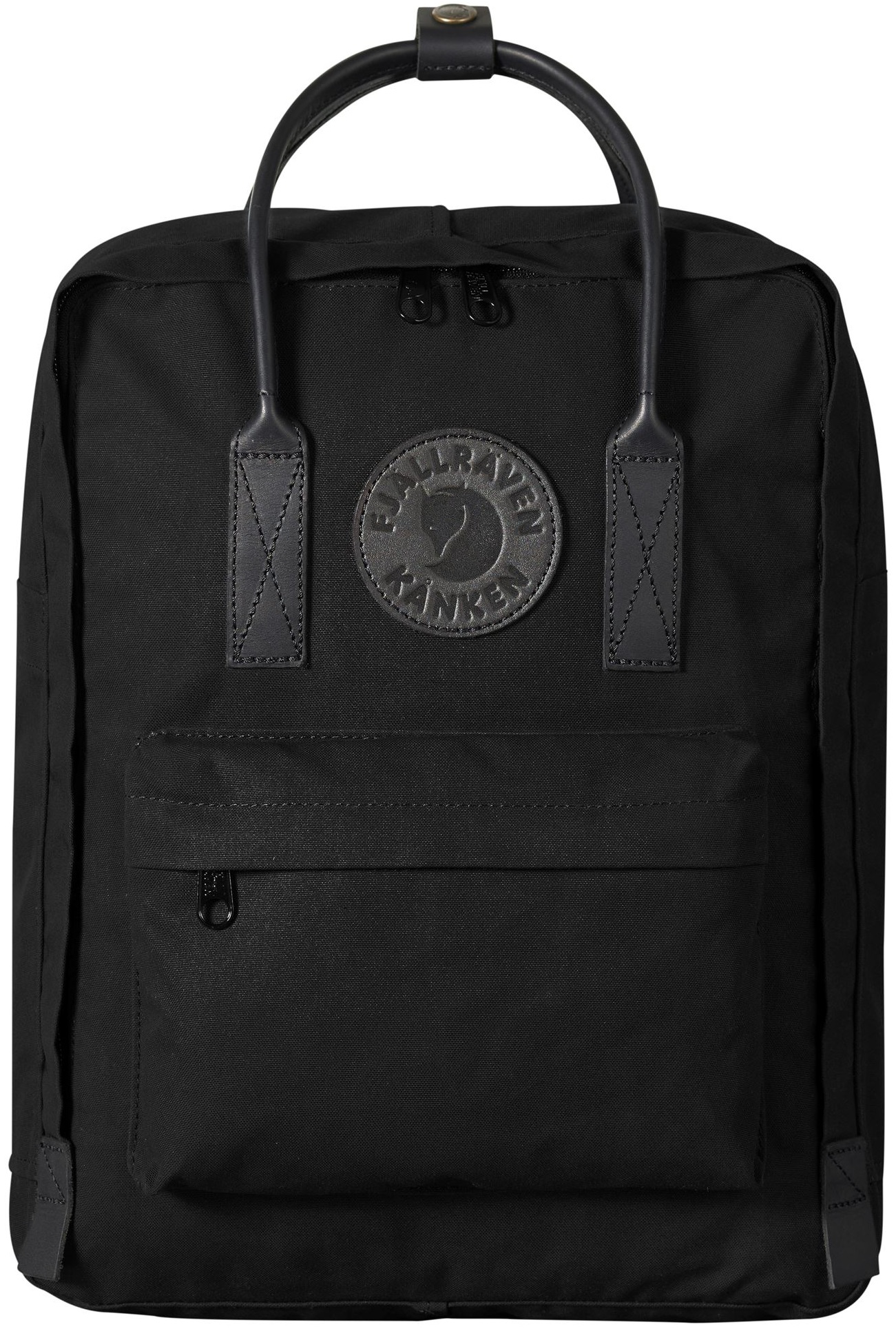Black version of the Kånken No. 2 backpack, made from G-1000 HeavyDuty material with leather accents. Sit pad made from G-1000 HeavyDuty material. Two side pockets and a zippered front pocket. Business card holder inside. Details and handles made from black leather.TECHNICAL SPECIFICATIONS