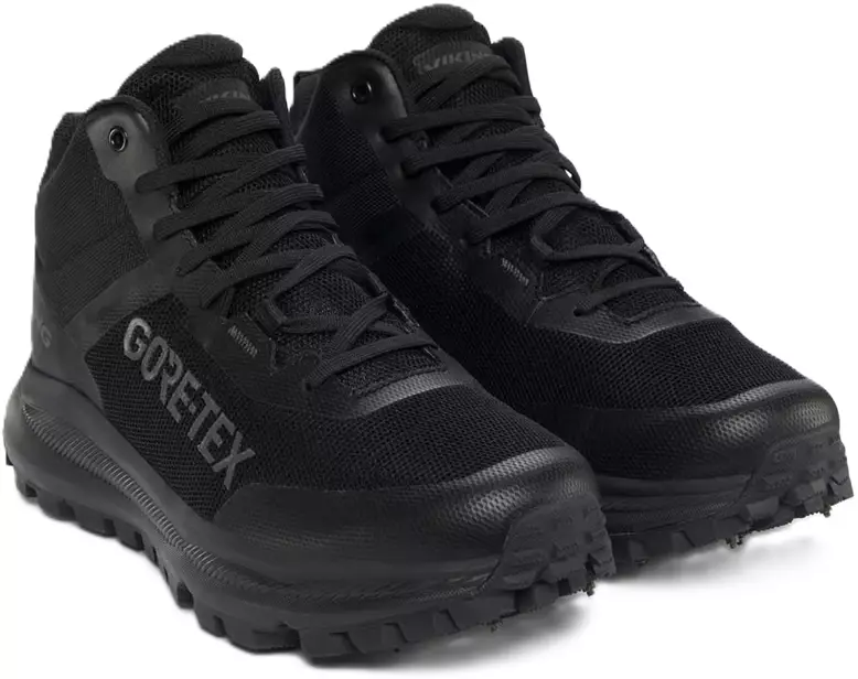 Den halvhöga ovandelen i slitstarkt textilmaterial har förstärkt tå och häl för ökad hållbarhet och stabilitet. Den PFAS-fria, vattentäta GORE-TEX®-membranen tillsammans med det varma fodret håller fötterna torra och behagligt varma även i kyla och väta.